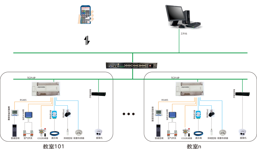 学校、集团公司等大批量使用空调、监控、照明灯等设备难以进行高效统一管理,很容易造成浪费,使用不舒适等情况。例如学校下课后空调没关闭,冬天窗户长时间关闭导致教室内空气混浊,机房长时间无人查看机房发生漏水难以及时察觉。宿舍,集团公司也是类似的情况,很难靠人力来一个个教室检查,所以集中统一的监控、控制就尤为重要。